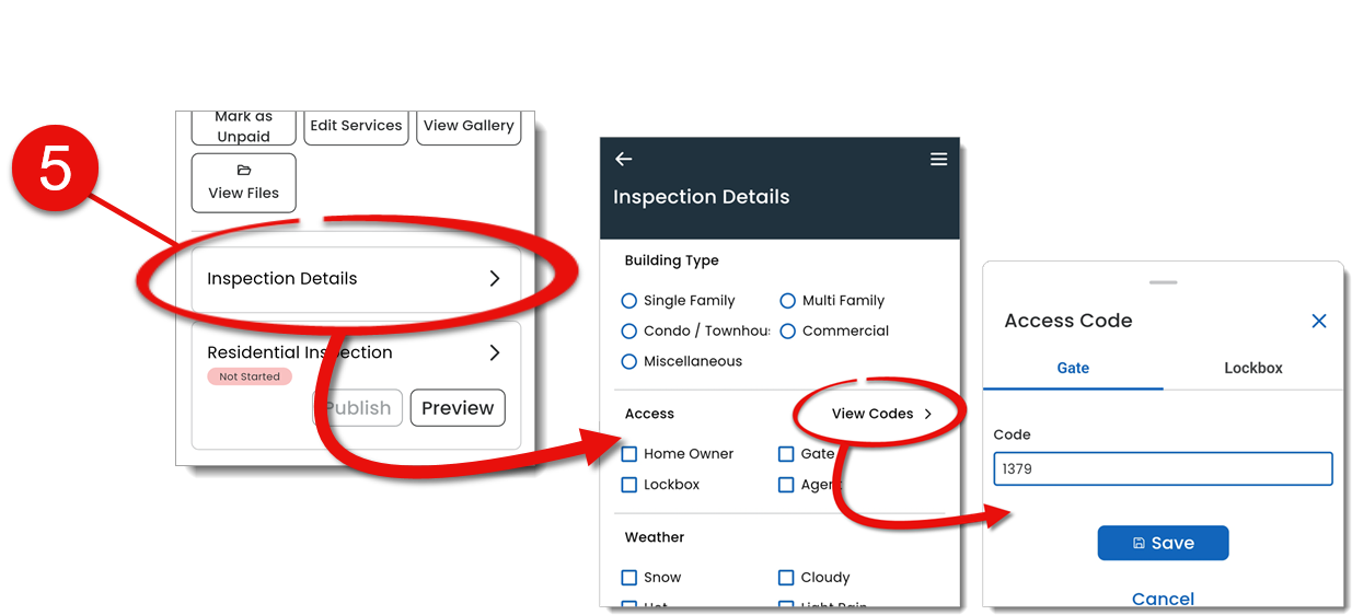 Tap Inspection Details to update key information such as attendance, occupancy, style, building type, access, and more.