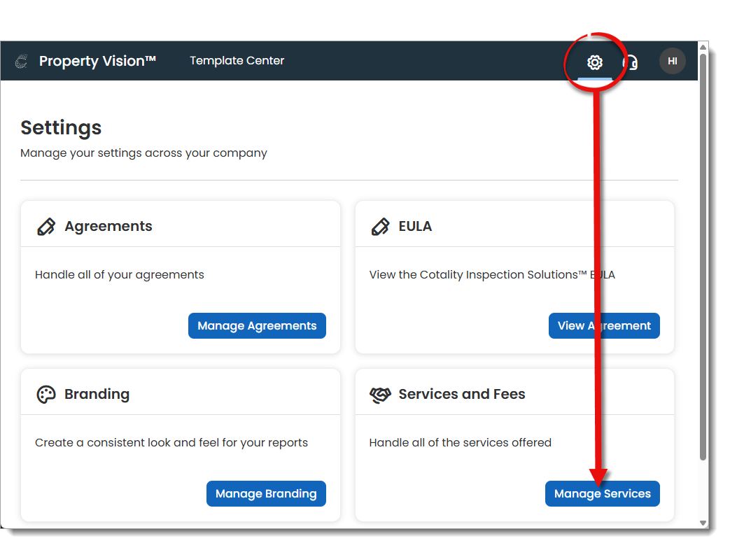 Log in to the Template Center to configure your inspection environment where you create or import your templates, agreements, and services and fees: