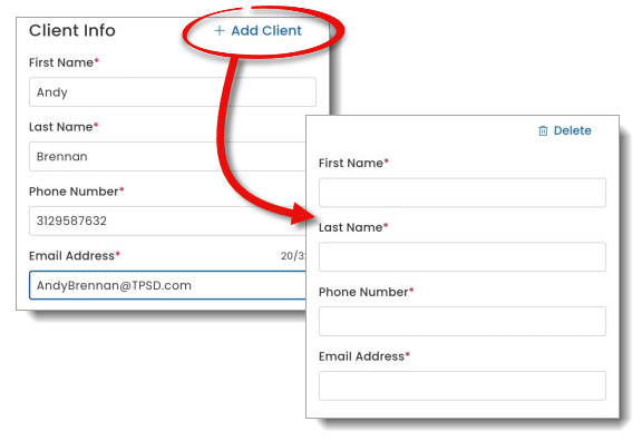 Fill out the contact information for your client in the Client Info section. Click +Add Client to add an additional block of fields for each additional client you want to include.