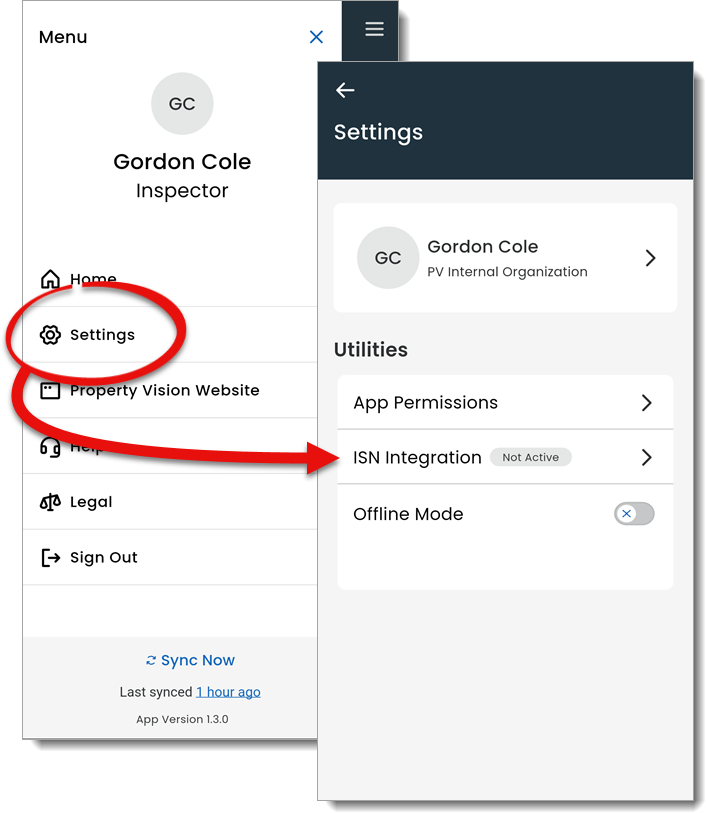 Tap ISN Integration to enter your ISN keys and connect your ISN account to Property Vision.