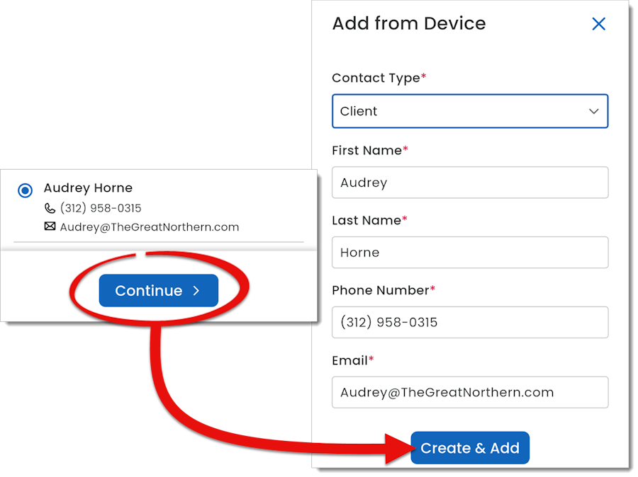 Select the Contact Type, edit the details as needed, and press Create & Add.