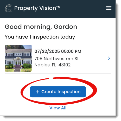 That's it! Once you create your inspection, you're returned to the home screen where you can view today's inspections, create another new inspection, or view all inspections.